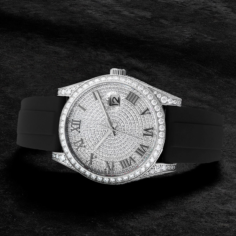 Fully moissanite diamond on dial, with date function.